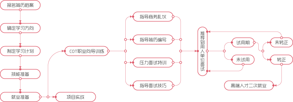 北大青鸟有完善的培训就业体系。从学员入学的时刻,就业流程就已经开始了。课程顾问老师会根据学员的个性特点,介绍相适应的技术课程。班主任老师会在学习过程中,教会学员必需的职业素养。技术老师会教授目前企业最急需的专业技能,通过不断的训练使学员不只掌握理论知识,更掌握实际操作能力。就业老师会为学员提供全方位的就业培训,根据学员的技术方向和技术能力推荐给适合的企业岗位就业。